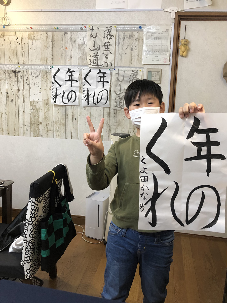 展覧会出品により、書きたい課題を見つけ、楽しく作品制作をおこないます。現在は、全国少年新春書道展(於:明治神宮)・板橋区民書道展・全国書道展(於:大東文化大学)に、大人は日本の書展・万紅展(於:国立新美術館)にも参加し、臨書・創作仮名・創作漢字・調和体(現代詩文)に取り組んでいます。